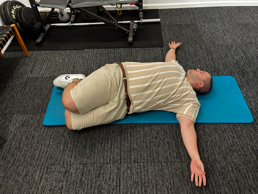 1. Lie on your side with knees bent and arms extended in front of you.